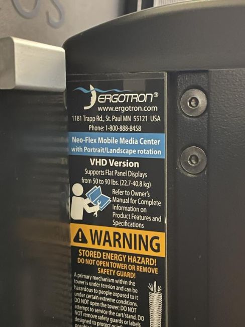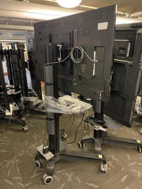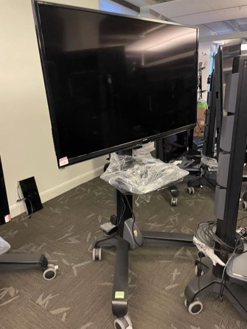 Lot Includes Sharp AQUOS 60" LC-60EQ10U LED Smart TV with Ergotron Neo-Flex VHD Mobile Media Center with Portrait/Landscape Rotation. HIT# 2319664. Loc: 6th Flr Office. Asset Located In 1355 Market St., San Francisco, CA 94103.