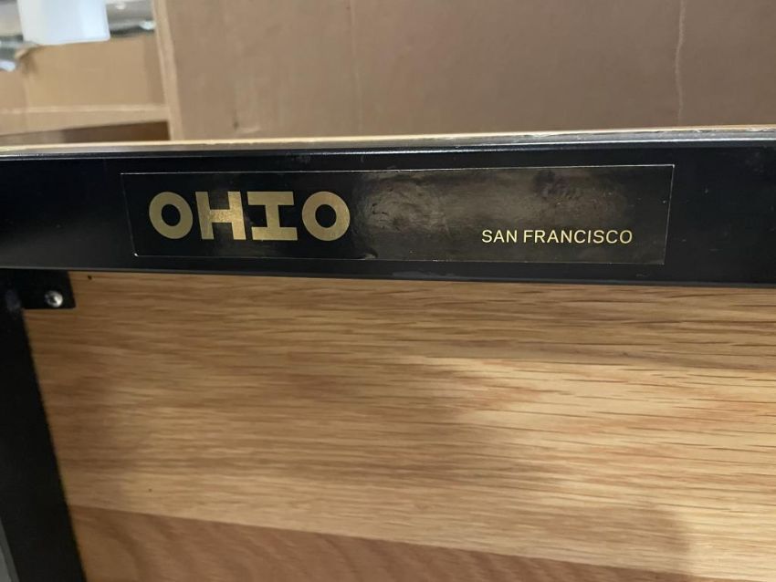 OHIO Design Rectangle Coffee Table, Solid Wood Top, Hand Welded Steel Frame. Dims = 60"L x 30"D x 14"H. HIT# 2319798. Loc: 6th Flr Office. Asset Located In 1355 Market St. San Francisco, CA 94103.