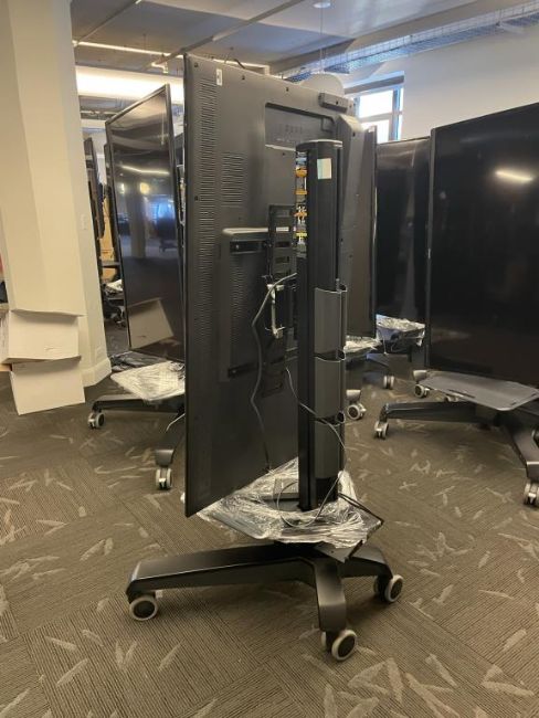 Lot Includes Sharp AQUOS 60" LC-60LE650U LED Smart TV with Ergotron Neo-Flex VHD Mobile Media Center with Portrait/Landscape Rotation. HIT# 2319644. Loc: 6th Flr Office. Asset Located In 1355 Market St., San Francisco, CA 94103.