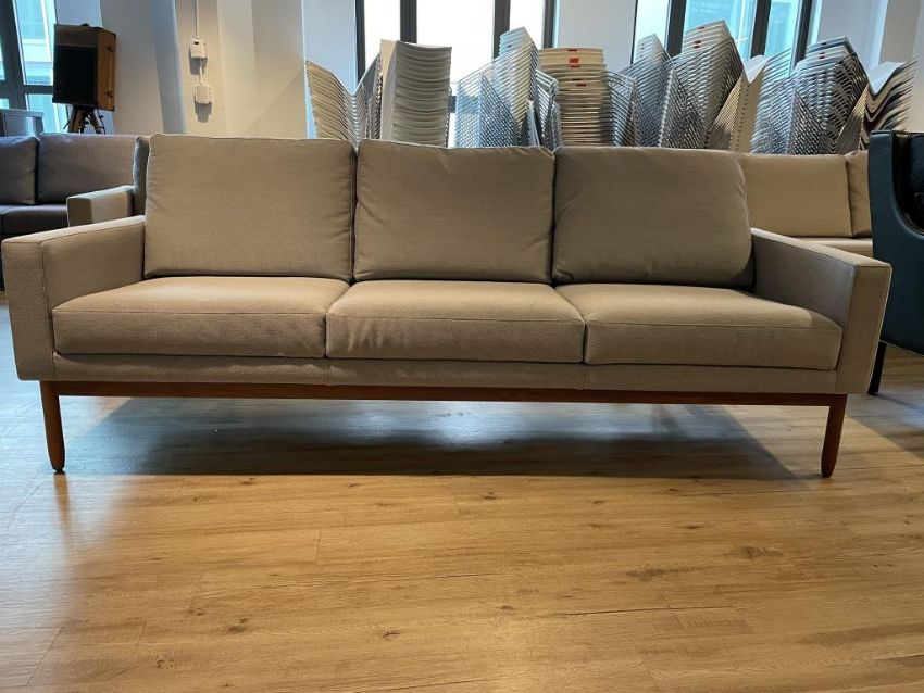 DWR Raleigh Sofa, Walnut Frame. Dims = 85"W x 35"D x 34"H. HIT# 2365816. Loc: 6th Flr. Asset Located In 1355 Market St. San Francisco, CA 94103.