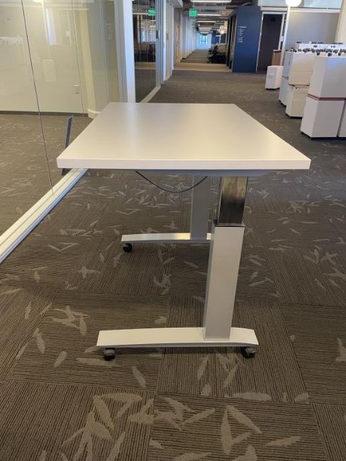 (8) Knoll 48"x 29.5" Sit-Stand Desk, On Wheels, Hydraulic Hand Grip, White Top, Silver Base. Loc: 6th Flr Office. Asset Located In 1355 Market St., San Francisco, CA 94103.