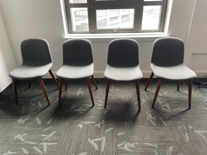 (4) JOB's di De Biaggio Omar Bacco Chair, Walnut Legs, Performance Fabric. Overall Dims = 18" W, 19.25" D, 39" H. HIT# 2319699. Loc: 6th Flr Office. Asset Located In 1355 Market St., San Francisco, CA 94103.