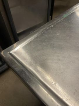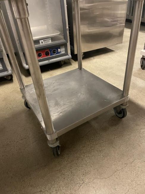 Stainless Steel Table, On Wheels. Dims = 30"W x 30"L x 34.5"H. HIT# 2319766. Loc: 6th Flr. Asset Located In 1355 Market St. San Francisco, CA 94103.