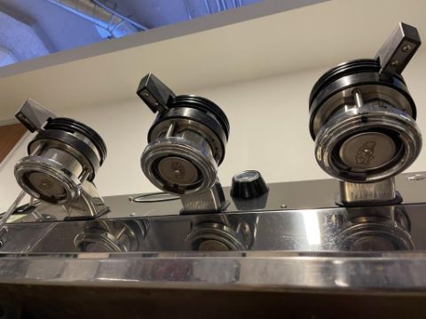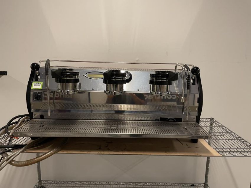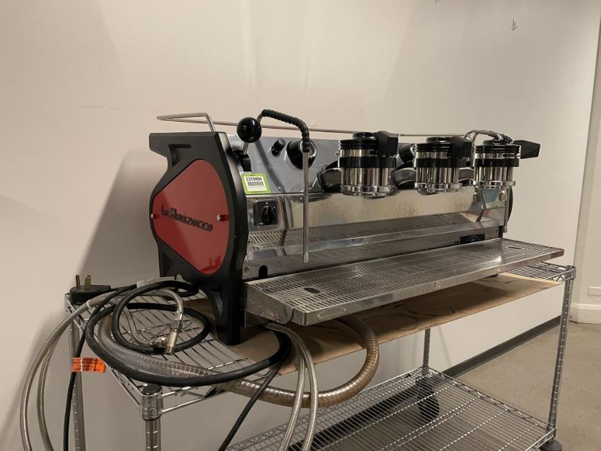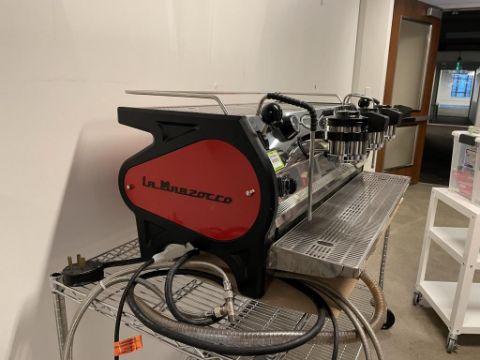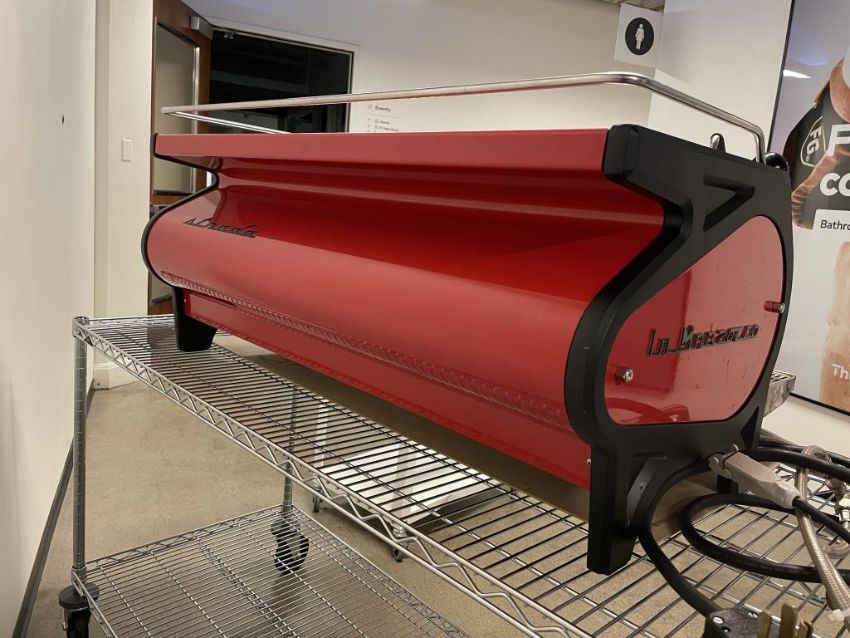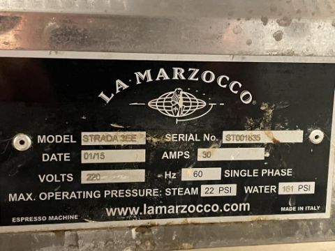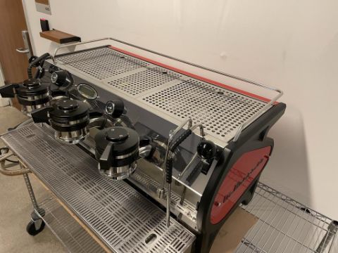 La Marzocco Strada 3 Group EE (Semi-Automatic) Espresso Machine, Black and Red; YOM: 01/15; 220V 60Hz. S/n# ST001835. HIT# 2319494. Loc: 6th Flr Cart. Asset Located In 1355 Market St., San Francisco, CA 94103.
