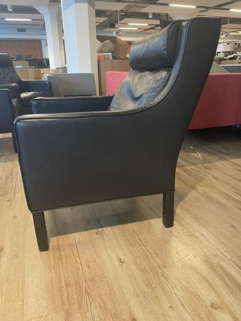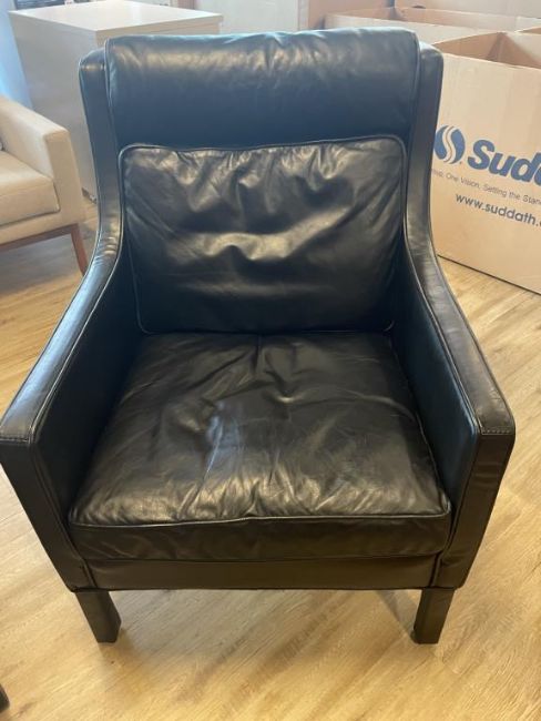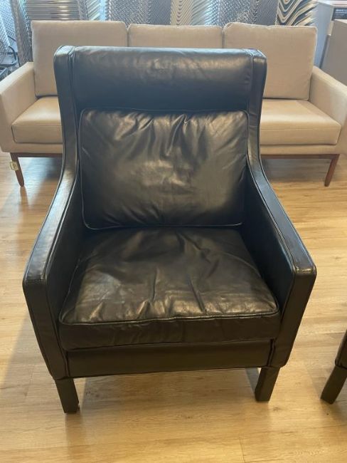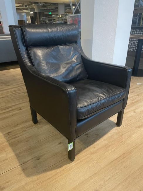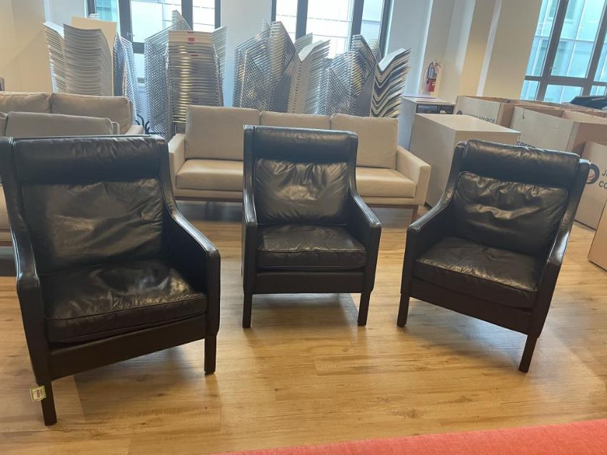 (3) Black Leather Restoration Hardware Armchairs. Dims = 28"W x 35"D x 37.5"H. HIT# 2365817. Loc: 6th Flr. Asset Located In 1355 Market St. San Francisco, CA 94103.