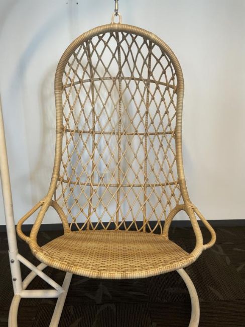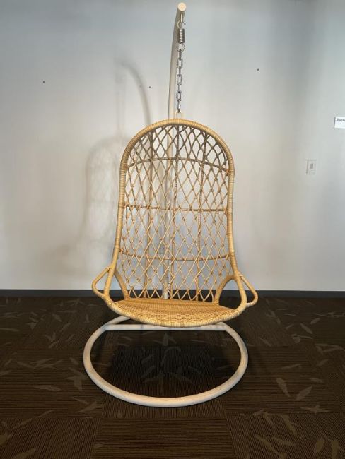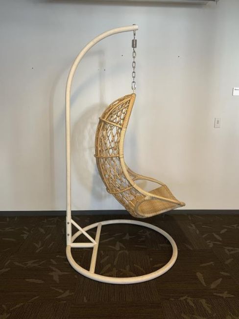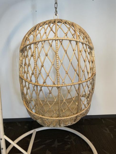 Serena & Lily Capistrano Hanging Chair & Stand. Dims = Base: 40.5"DIAM x 79"H; Chair: 33"W x 24"D x 43.5"H. HIT# 2319758. Loc: 6th Flr Office. Asset Located In 1355 Market St., San Francisco, CA 94103.