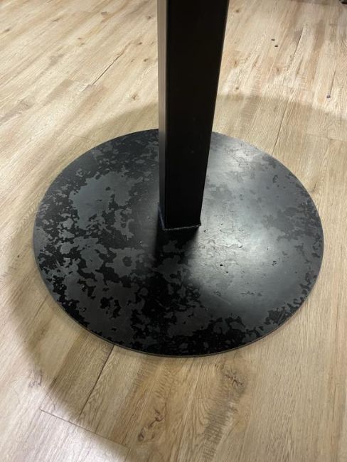 OHIO Design Round Café Table, Pedestal, Solid Wood Top, Hand Welded Steel Frame. Dims = 30"D x 28.75"H. HIT# 2319795. Loc: 6th Flr Office. Asset Located In 1355 Market St. San Francisco, CA 94103.