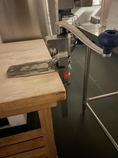 Maple Butcher Block Prep Table with Shelves. Dims 48"L x 20"D x 36"H. HIT# 2319781. Loc: 6th Flr Kitchen. Asset Located In 1355 Market St. San Francisco, CA 94103.