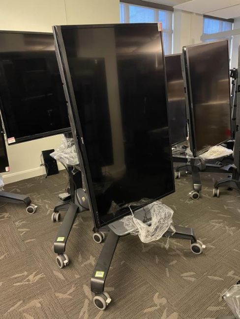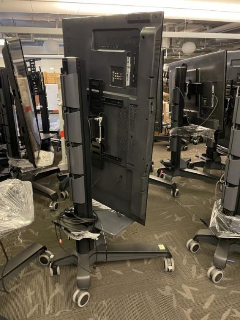 Lot Includes Sharp AQUOS 60" LC-60EQ10U LED Smart TV with Ergotron Neo-Flex VHD Mobile Media Center with Portrait/Landscape Rotation. HIT# 2319663. Loc: 6th Flr Office. Asset Located In 1355 Market St., San Francisco, CA 94103.