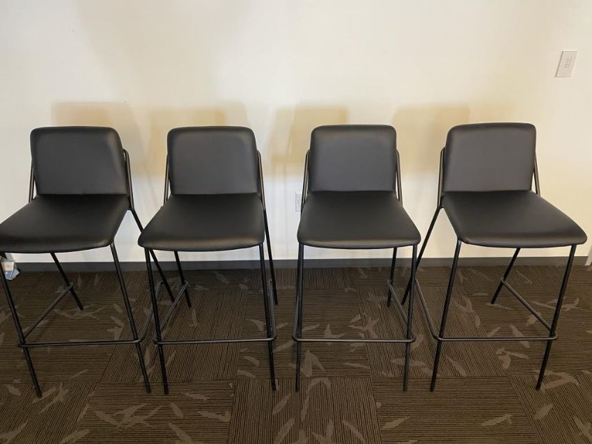 (4) M.A.D Sling Bar Stool, Black Frame, Black PU/Eco-Leather Seat. Overall Dims = 20" W x 22" D x 41" H. HIT# 2319762. Loc: 6th Flr Office. Asset Located In 1355 Market St., San Francisco, CA 94103.