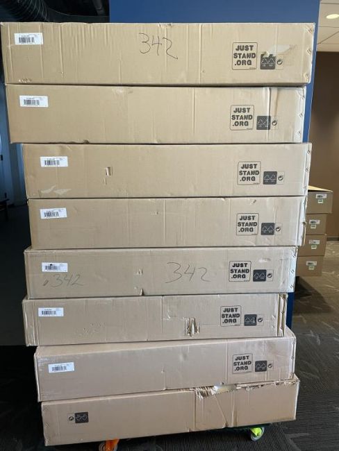 (8) Ergotron WorkFit-S 33-342-200, Single LD Workstation (Sit-Stand) with Worksurface (black) *In Original Packaging*. HIT# 2319735. Loc: 6th Flr Office. Asset Located In 1355 Market St., San Francisco, CA 94103.