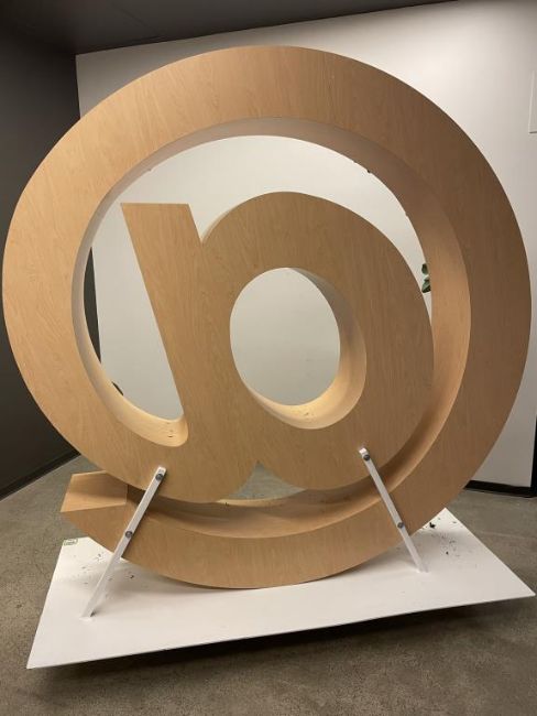 "@" Sculpture Planter, Currently Artificial Plants but can be placed with real plants. Overall Dims = 73"W x 75.5"H x 30"D; "@" Dims = 74"dia x 12"D. HIT# 2319676. Loc: 6th Flr Office. Asset Located In 1355 Market St., San Francisco, CA 94103.