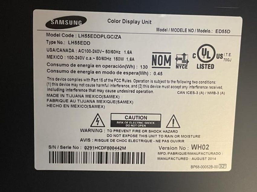 Lot Includes Samsung 55" LH55EDDPLGC/ZA Color Display with Ergotron Neo-Flex VHD Mobile Media Center with Portrait/Landscape Rotation. HIT# 2319637. Loc: 6th Flr Office. Asset Located In 1355 Market St., San Francisco, CA 94103.