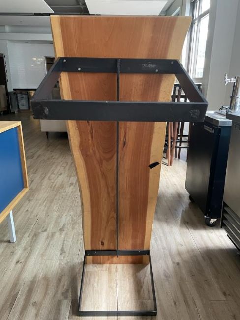 OHIO Design Coffee Table/Bench, Solid Wood Top, Hand Welded Steel Frame. Dims = 60"L x 18.5"D x 16"H. HIT# 2365803. Loc: 6th Flr Office. Asset Located In 1355 Market St. San Francisco, CA 94103.