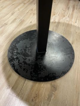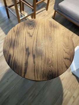 OHIO Design Round Café Table, Pedestal, Solid Wood Top, Hand Welded Steel Frame. Dims = 30"D x 28.75"H. HIT# 2319792. Loc: 6th Flr Office. Asset Located In 1355 Market St. San Francisco, CA 94103.
