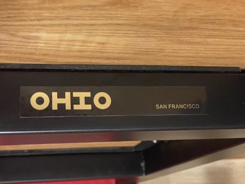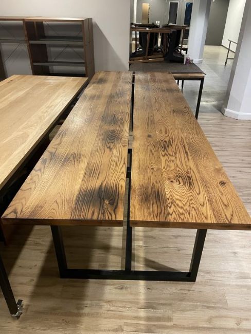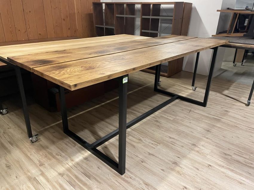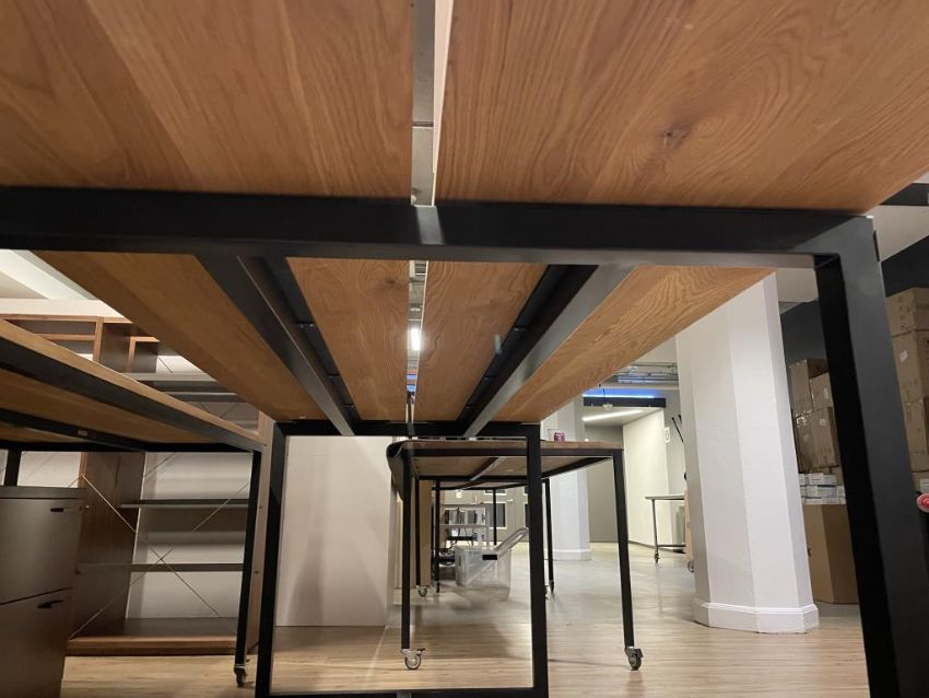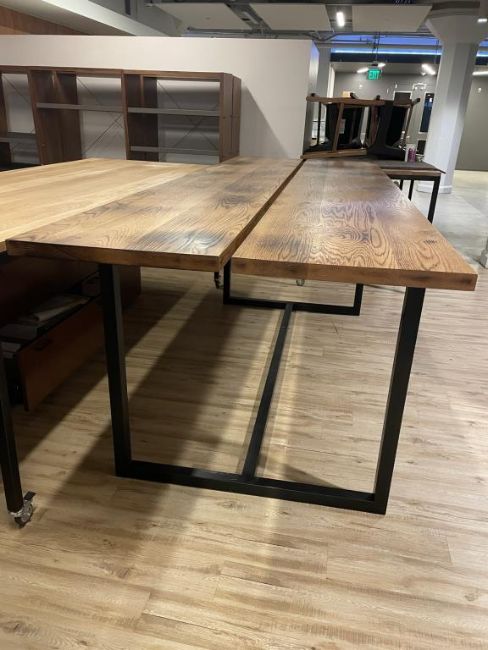 OHIO Design High top Table, Solid Wood Top, Hand Welded Steel Frame. Dims = 120"L x 42"D x 42.25"H. HIT# 2319782. Loc: 6th Flr Office. Asset Located In 1355 Market St. San Francisco, CA 94103.