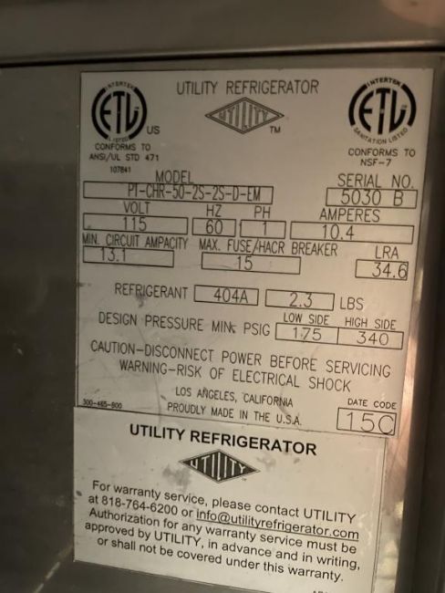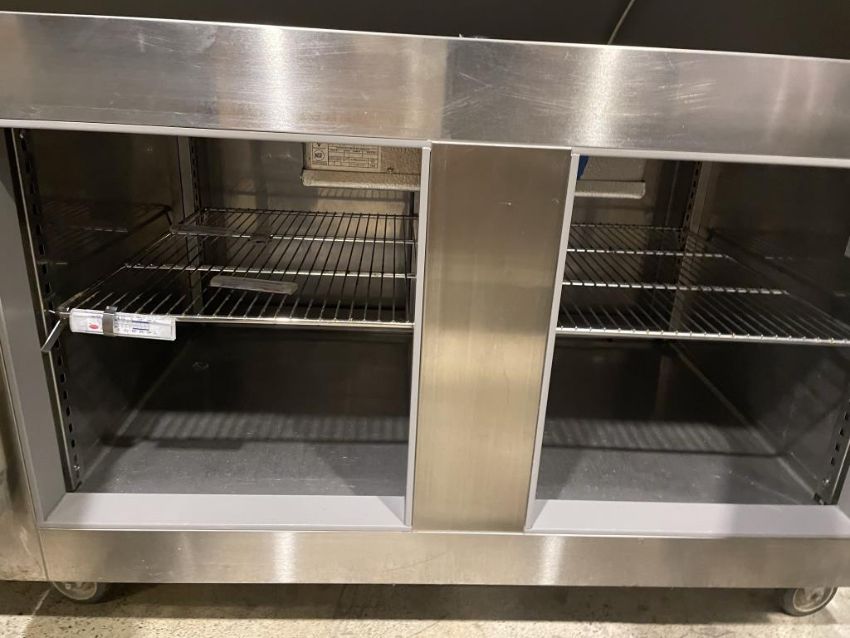 Utility pt-chr-50-2S-2S-D-EM Counter Height Double Sided Two-Section Refrigerator, On Wheels. S/n# 5030-B. Overall Dims = 68"L x 32.5"H x 32.5"D. HIT# 2319552. Loc: 6th Flr. Asset Located In 1355 Market St., San Francisco, CA 94103.