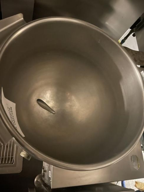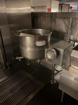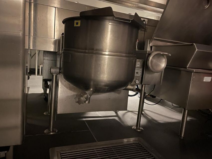 Cleveland KGL-40-T Natural Gas 40 Gallon Tilting 2/3 Steam Jacketed Kettle Overall Dims = 42"W x 41"H x 36"D. HIT# 2319565. Loc: 6th Flr Kitchen. Asset Located In 1355 Market St., San Francisco, CA 94103.