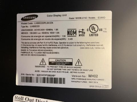 Lot Includes Samsung 55" LH55EDDPLGC/ZA Color Display with Ergotron Neo-Flex VHD Mobile Media Center with Portrait/Landscape Rotation. HIT# 2319643. Loc: 6th Flr Office. Asset Located In 1355 Market St., San Francisco, CA 94103.