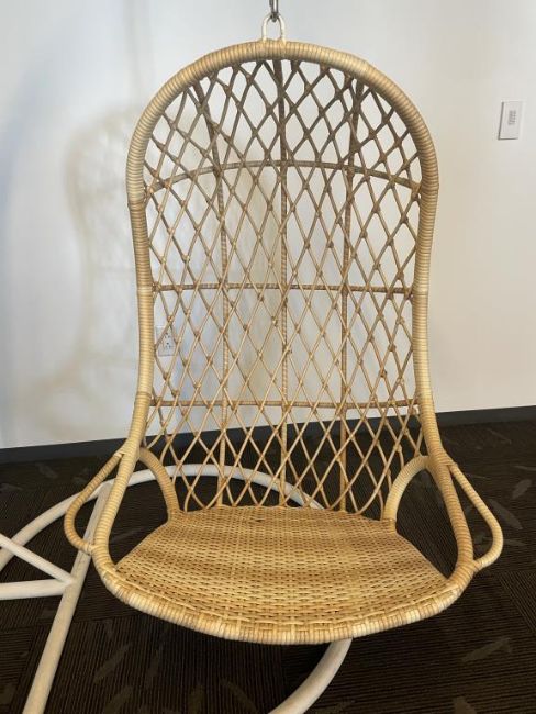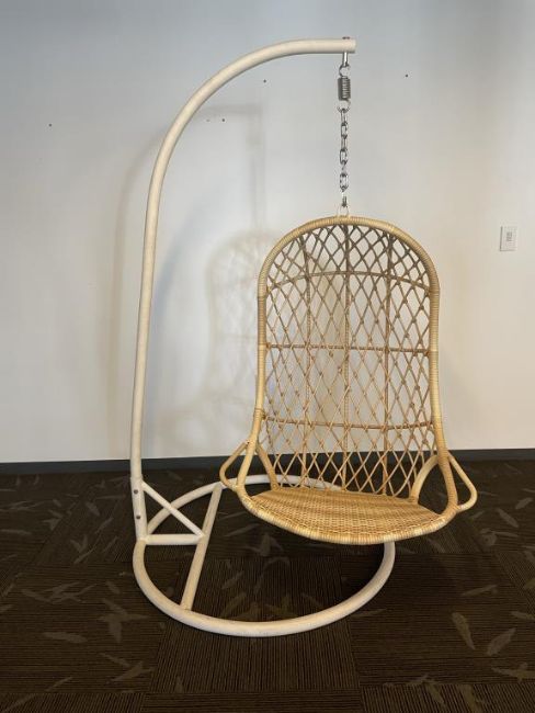 Serena & Lily Capistrano Hanging Chair & Stand. Dims = Base: 40.5"DIAM x 79"H; Chair: 33"W x 24"D x 43.5"H. HIT# 2319759. Loc: 6th Flr Office. Asset Located In 1355 Market St., San Francisco, CA 94103.