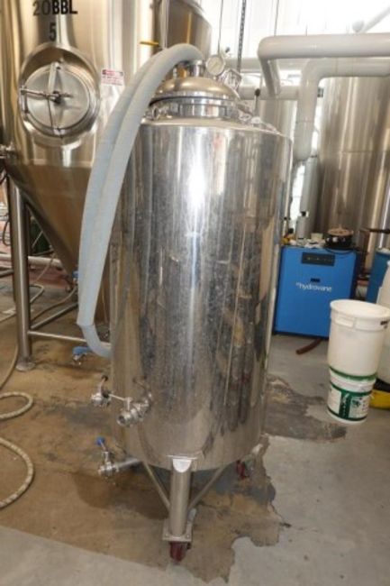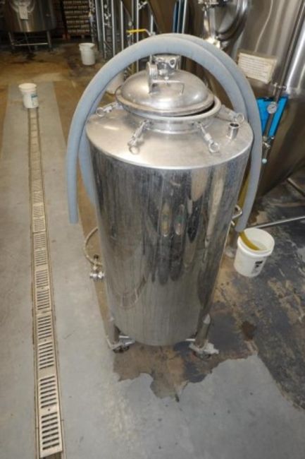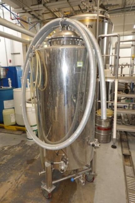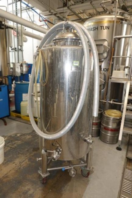 Stout Mobile (Approx) 100-Gallon Capacity Stainless Steel Tank With Top Lid. HIT# 2358396. Brewery Area. Asset Located at 929 E Bay St., Jacksonville, FL 32202.