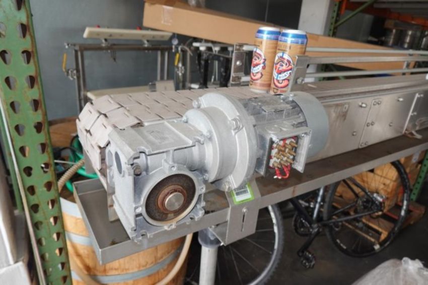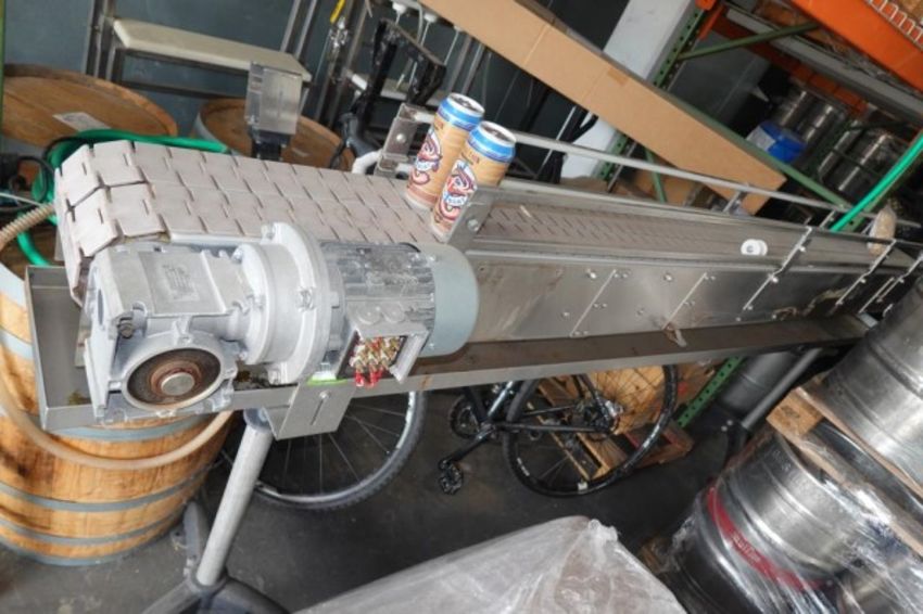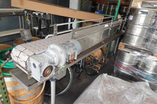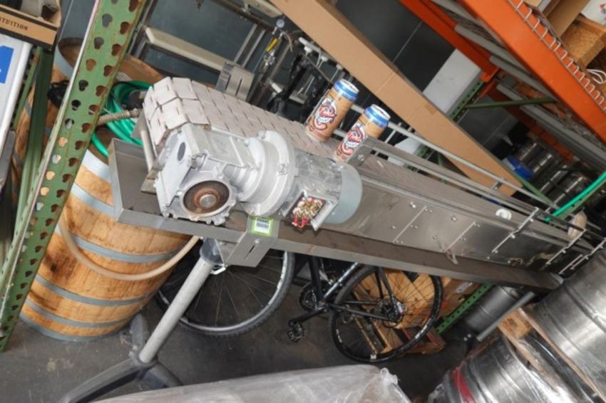 Free Standing Electric Powered Conveyor, Approx. 10'" ft. L x 7" in. (Double 3.5") Flex Link Belt Conveyor. Stainless Steel Frame. HIT# 2358405. Brewery Area- Dock. Asset Located at 929 E Bay St., Jacksonville, FL 32202.