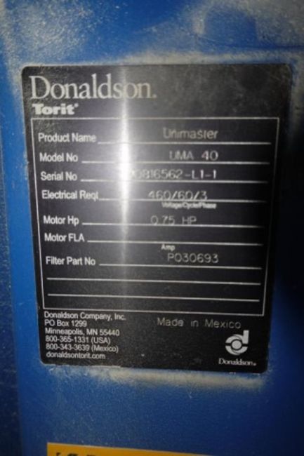 Donaldson Unimaster UMA40 Mill Dust Collector System. SN# 10816562-L1-1. HIT# 2520199. Grain Room. Asset Located at 929 E Bay St., Jacksonville, FL 32202. ***Auctioneer Notice*** Payment for this lot is due by no later than February 25, 2026. Removal of this lot is from March 9 – March 20, 2026. Lots not removed by close of business on March 20, 2026, will be deemed abandoned without refund or recourse.