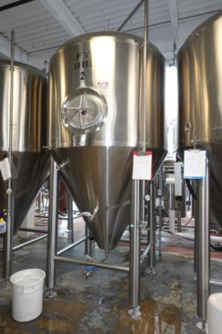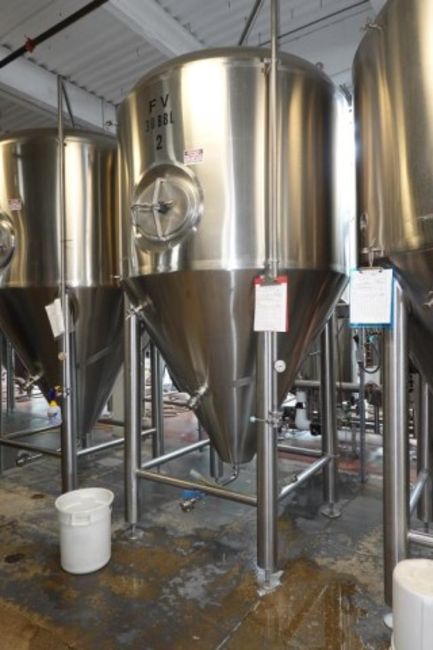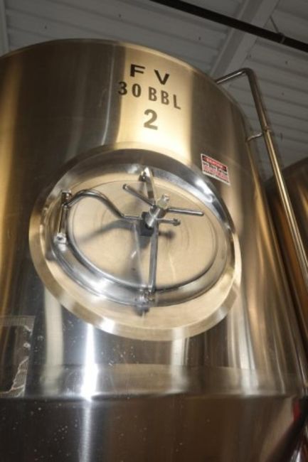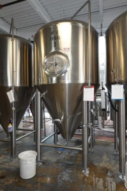 30 BBL Stainless Steel Glycol Cooled Fermenter Tank. HIT# 2358352. Brewery Area. Asset Located at 929 E Bay St., Jacksonville, FL 32202.
