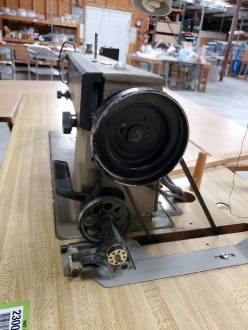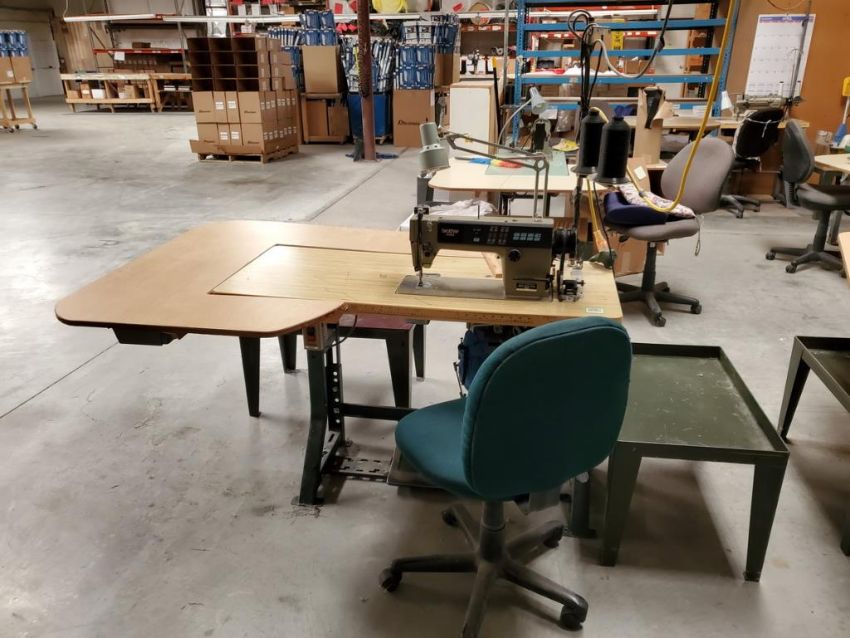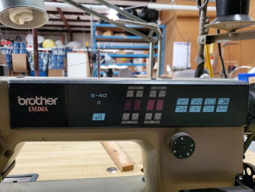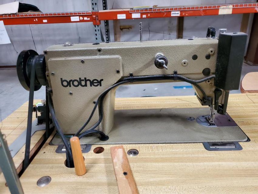 Brother Exedra E-40 DB2-B737-413 Lockstitch Flatbed Industrial Sewing machine, Features: Straight Stitch, Single Needle, Lockstitch, Reverse, Auto Cutter, Under Bed Trimmer (UBT), Knee lifter, Sewing Speed Up to 2000 SPM (Stitches Per Minute), Single phase 240v 13 amp (can be used at home). Also with (2) Metal Tables. HIT# 2300811. Sewing Area. Asset Located at 6607 Mountain View Rd., Ooltewah, TN 37363.