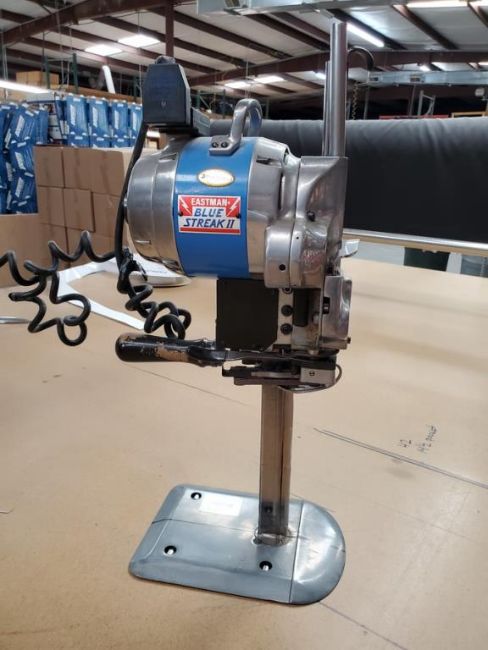 Eastman 629X Blue Streak II Fabric Cutting Machine, 8 Inches, 110V. HIT# 2300821. Sewing Area. Asset Located at 6607 Mountain View Rd., Ooltewah, TN 37363.