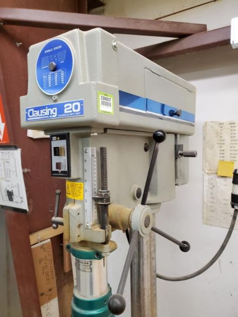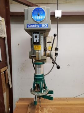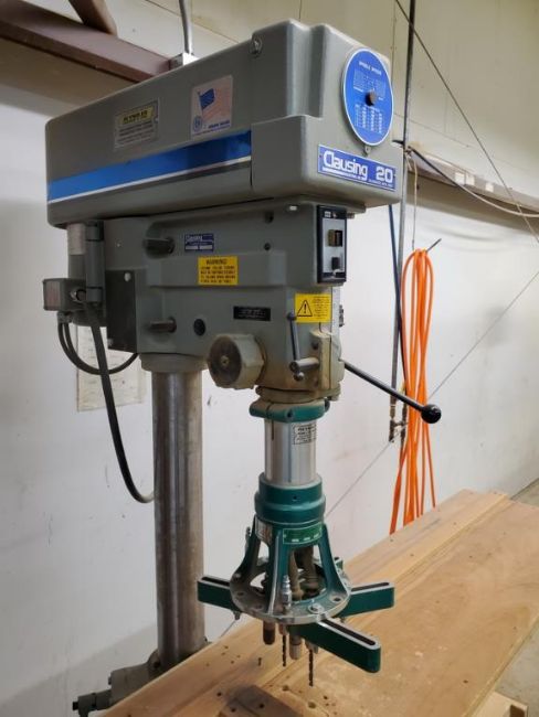 Clausing 2224 20" Floor Model Drill Press with Pneumatic Quill Feed with Commander Multi-Drill model 500. HIT# 2300837. Wood Shop. Asset Located at 6607 Mountain View Rd., Ooltewah, TN 37363.