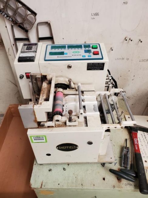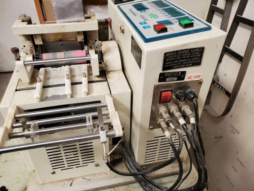 Sheffield HC 530 Hot & Cold Strip Cutting Machine. HIT# 2300819. Sewing Area. Asset Located at 6607 Mountain View Rd., Ooltewah, TN 37363.