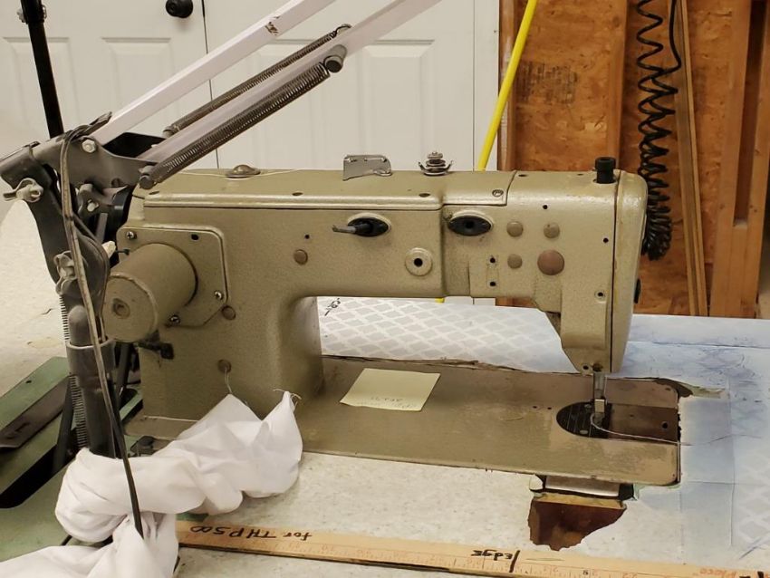 Mitsubishi DB-189 Single Needle sewing machine, Sunco Clutch Motor. HIT# 2300816. Sewing Area. Asset Located at 6607 Mountain View Rd., Ooltewah, TN 37363.