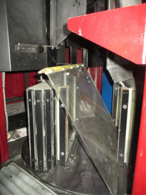 Quipp 300 Narrow Newsprint Newspaper Stacker, 7 x 13.75in [missing monitor]. HIT# 2307580. Loc: Packaging Center - Storage. Asset Located at 2100 Q Street, Sacramento, CA 95816.