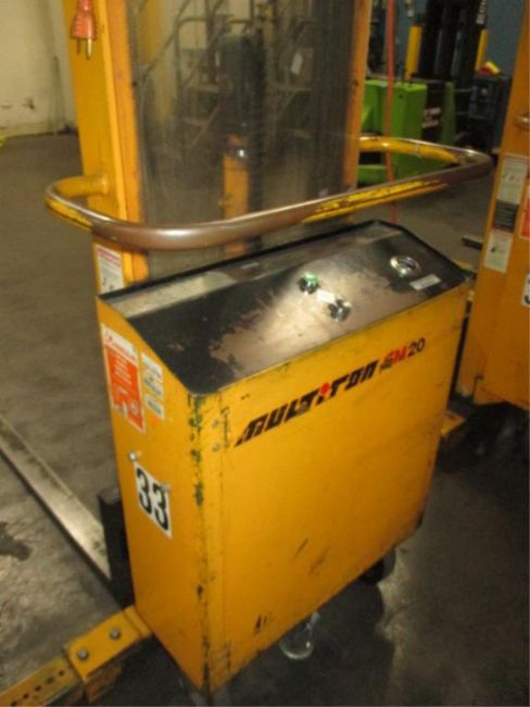Multiton SM20 Electric Straddle Lift, Cap. 2200. Forks: 3.5ft, Height: 80.25in. HIT# 2307530. Loc: Packaging Center - East. Asset Located at 2100 Q Street, Sacramento, CA 95816.