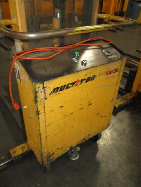 Multiton SM20 Electric Straddle Lift, Cap. 2200. Forks: 3.5ft, Height: 80.25in. HIT# 2307555. Loc: Packaging Center - Southeast. Asset Located at 2100 Q Street, Sacramento, CA 95816.