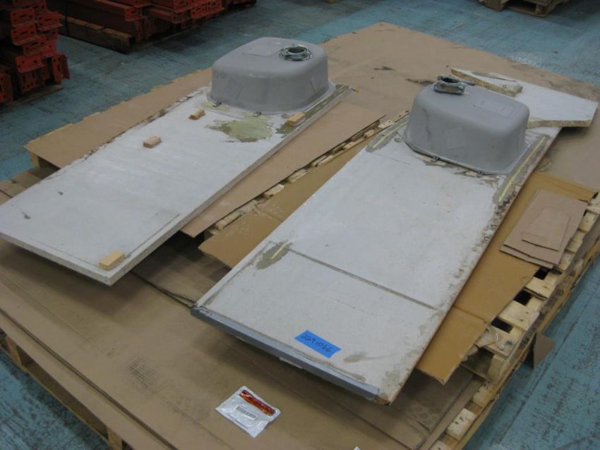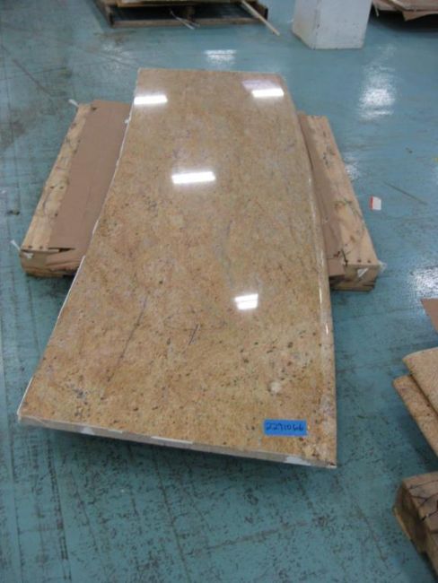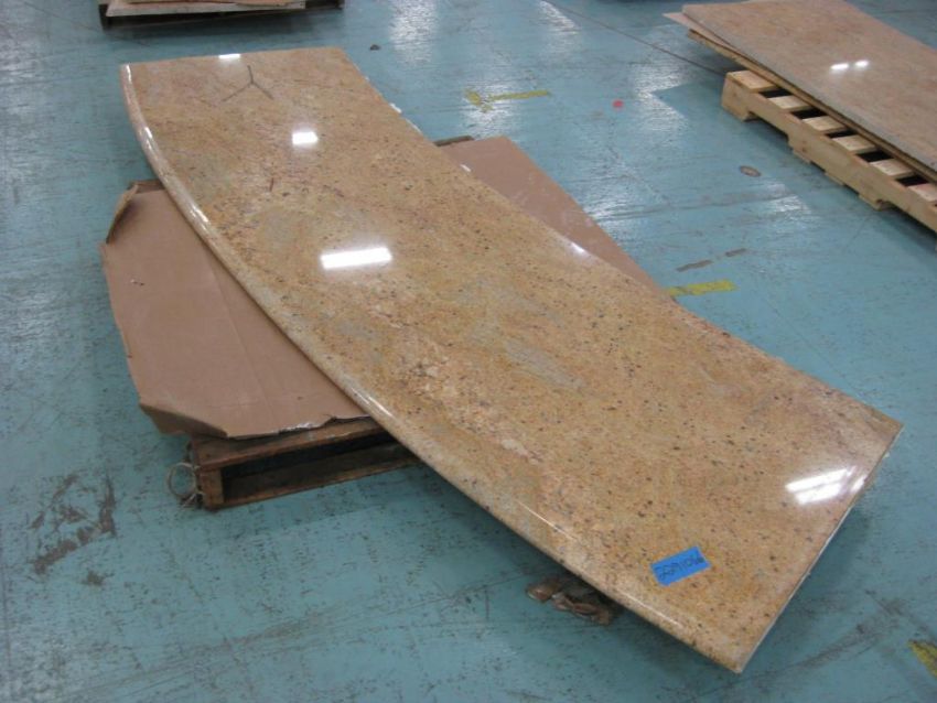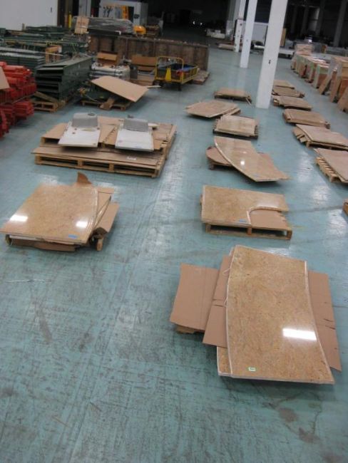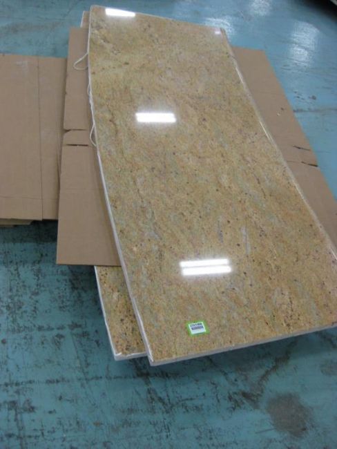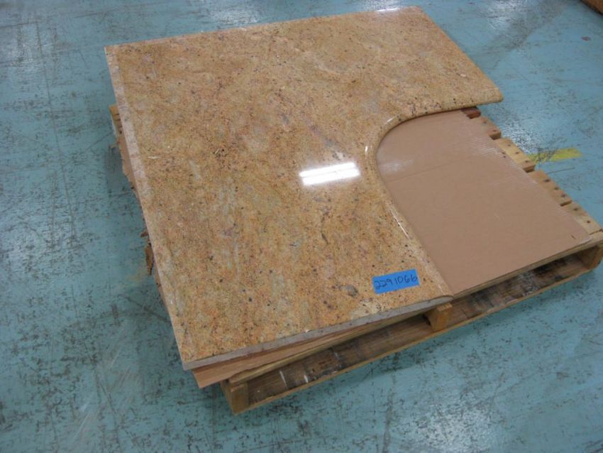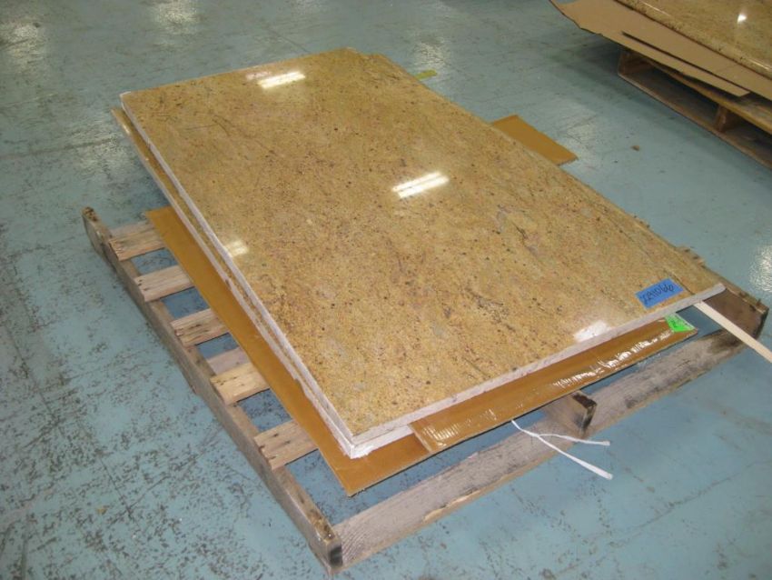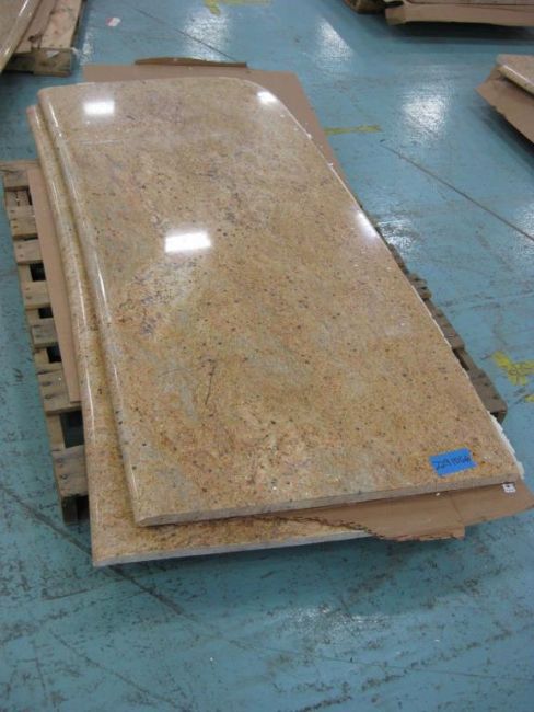 Lot: (Qty 11) Countertop slabs of assorted sizes on 8 pallets. 2 Countertops have sinks. Countertops measure 1 1/8th inch thick. Unknown material (possibly Marblelite). HIT# 2291066. Warehouse. Asset Located at 1 Corporate Woods Dr., Bridgeton, MO 63044.