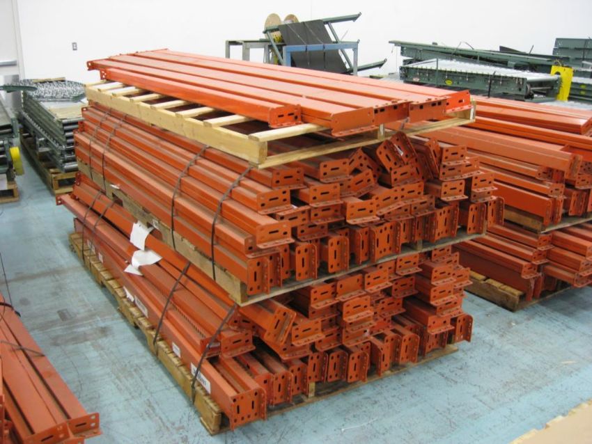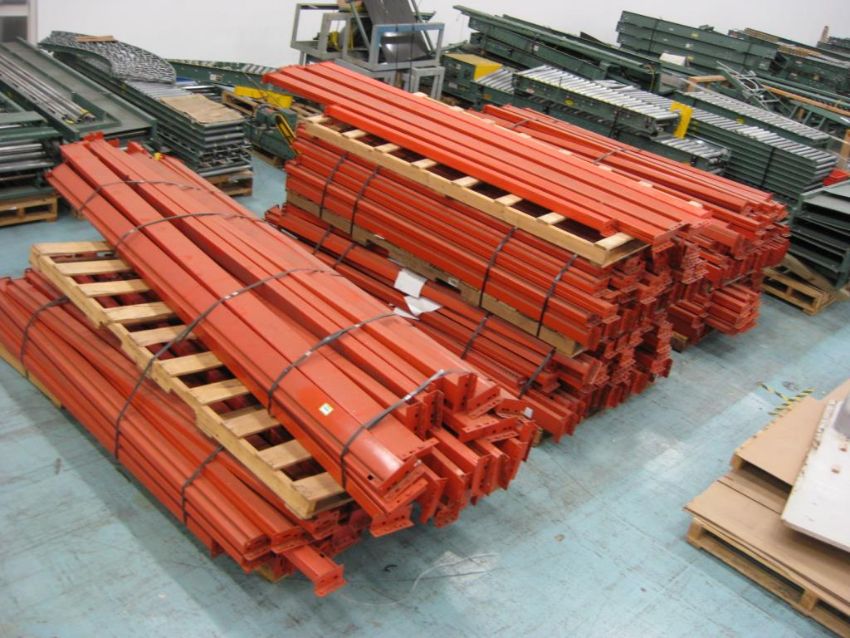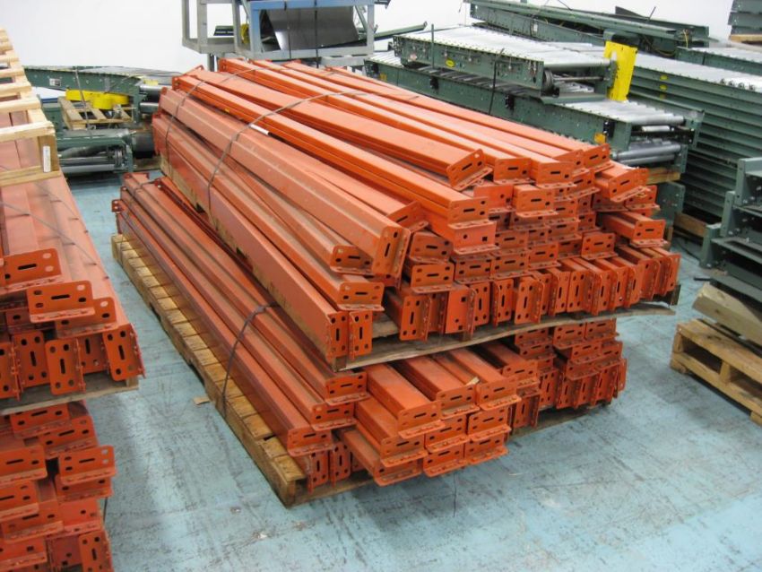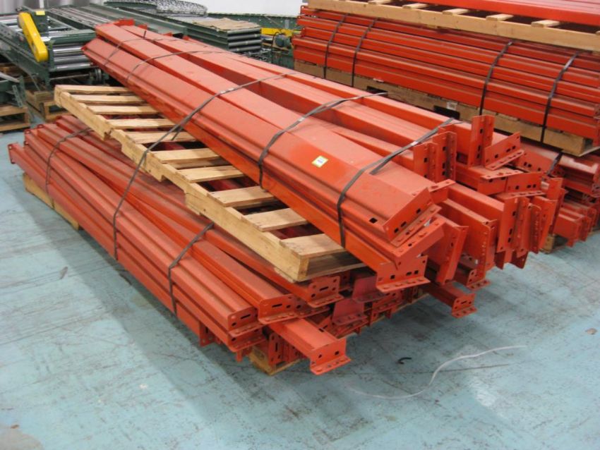 Pallet racking crossbars. Assorted lengths on 7 pallets. Sizes include: 9 foot (260 pieces); 12 foot (24 pieces). HIT# 2291021. Warehouse. Asset Located at 1 Corporate Woods Dr., Bridgeton, MO 63044.