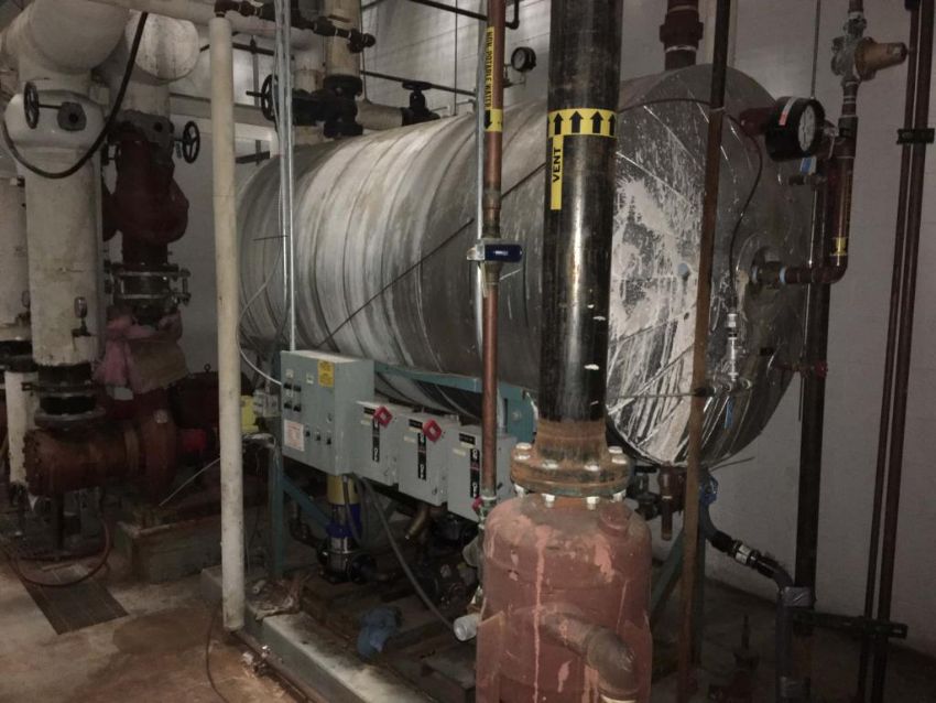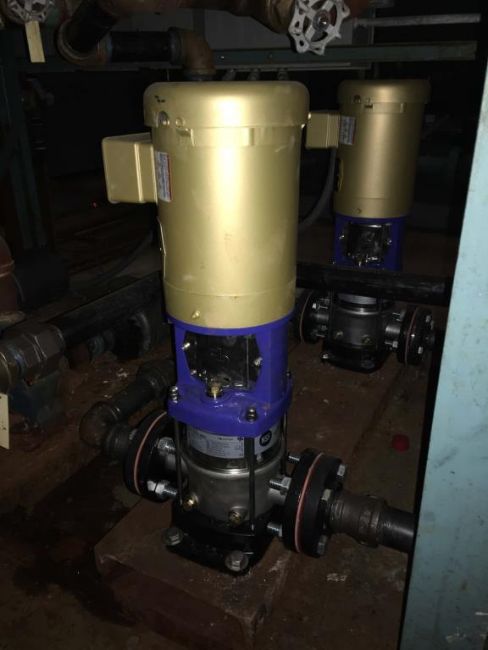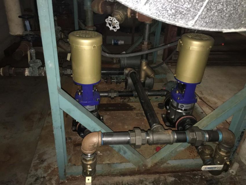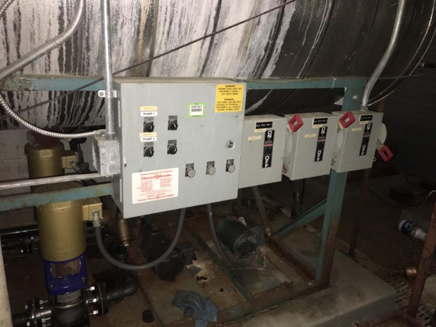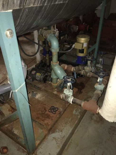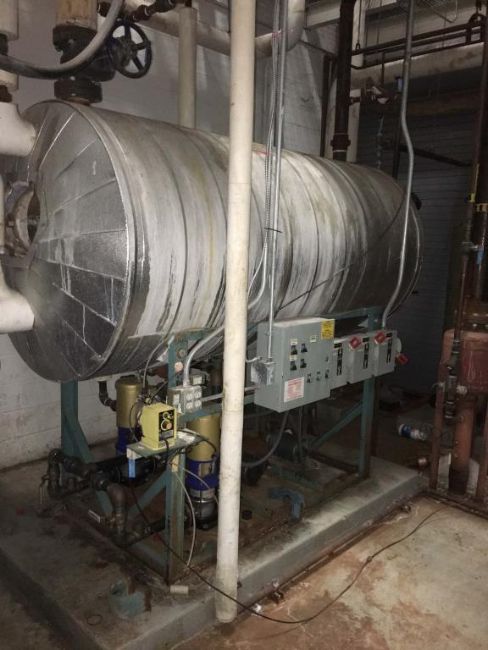 Cleaver Brooks Boiler reserve tank. Includes two DP pumps with Baldor motors. Approximately 400-500 gallon capacity. HIT# 2291023. Warehouse Mechanical Room. Asset Located at 1 Corporate Woods Dr., Bridgeton, MO 63044.