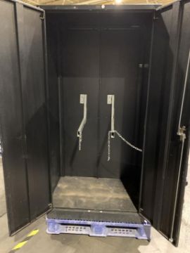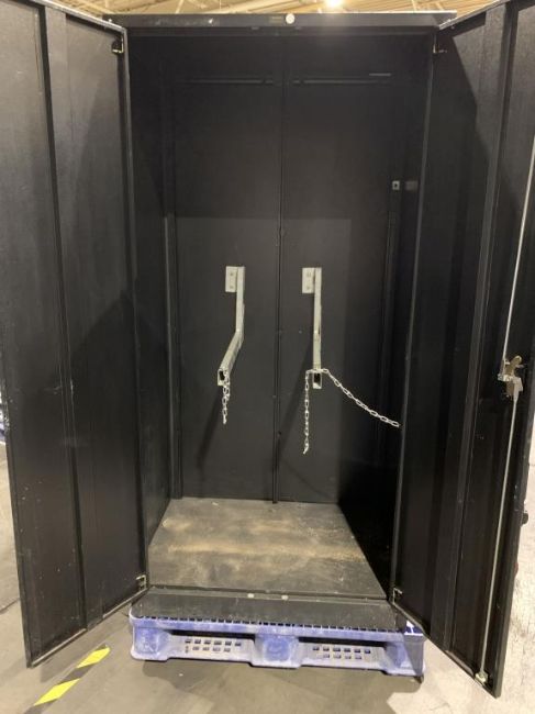 Global Black Storage Cabinet, 36"Wx24"Dx72"H Cabinet 2 door, 2 dividers. HIT# 2336001. Asset Located at 100 Central Avenue West, Brockville, ON K6V 4N8 Canada.