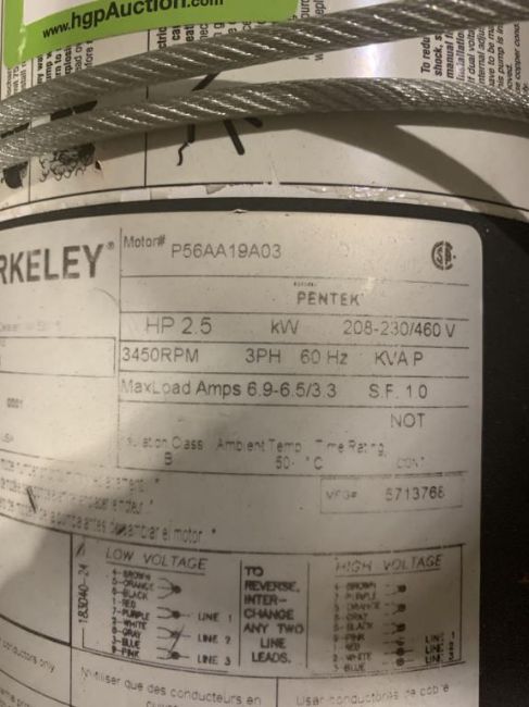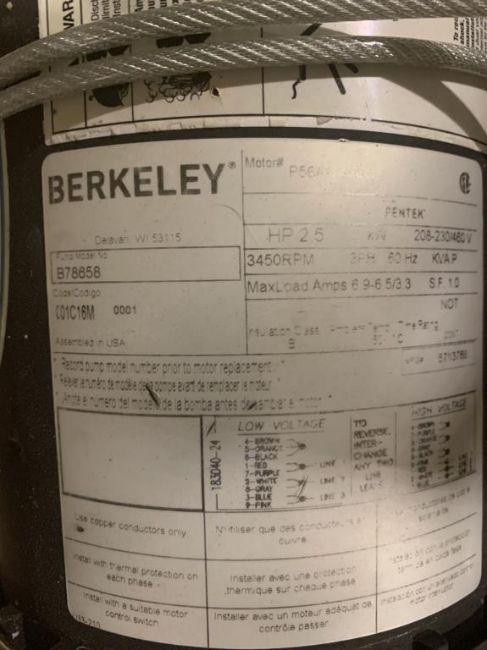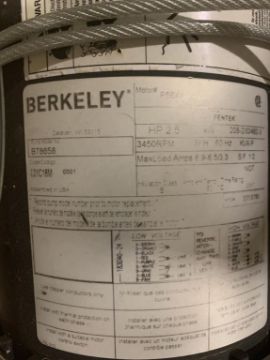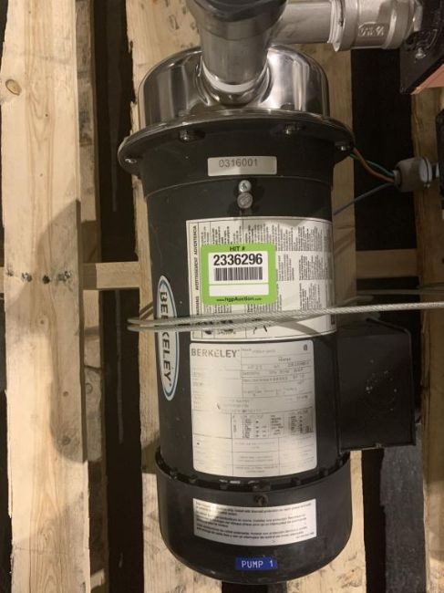 Berkeley Model B78658 Stainless Steel Pump , 2.5hp motor, 208V, 3ph, 60 amp, 3450 Rpm. HIT# 2336296. Asset Located at 100 Central Avenue West, Brockville, ON K6V 4N8 Canada.