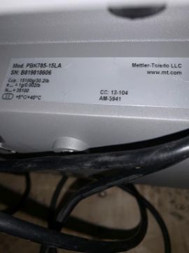 Mettler Toledo Model PBK785-15LA Scale with integrated head Base 9.5"Wx14"L, 15 KG Max. HIT# 2336354. Asset Located at 100 Central Avenue West, Brockville, ON K6V 4N8 Canada.