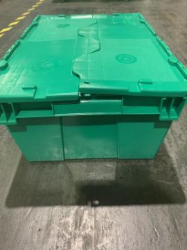 Lot of (72) Uline S-20588G Green Totes with Flip Tops, 19.9"x14.2"x8.4"H, New. HIT# 2336418. Asset Located at 100 Central Avenue West, Brockville, ON K6V 4N8 Canada.