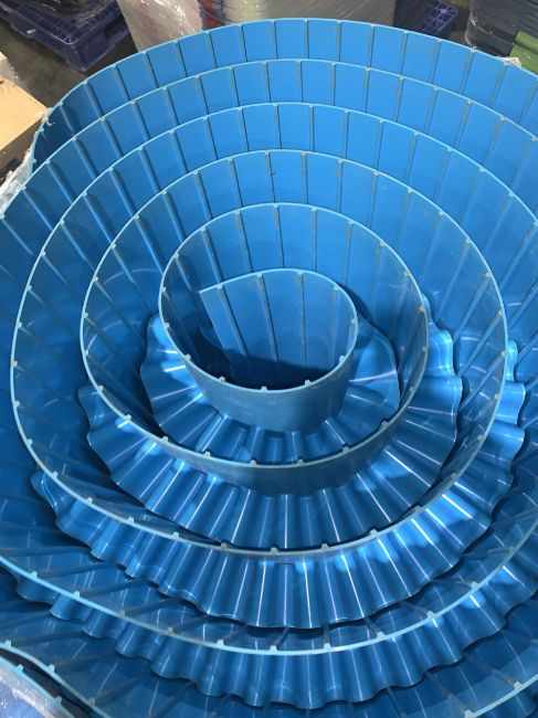 Keltech conveyors Paddle Conveyor Belts, Approximately 35' long belt is 24" wide with 3" high guides, 8" wide between guides. HIT# 2336277. Asset Located at 100 Central Avenue West, Brockville, ON K6V 4N8 Canada.