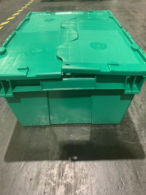 Lot of (72) Uline S-20588G Green Totes with Flip Tops, 19.9"x14.2"x8.4"H , New. HIT# 2336416. Asset Located at 100 Central Avenue West, Brockville, ON K6V 4N8 Canada.