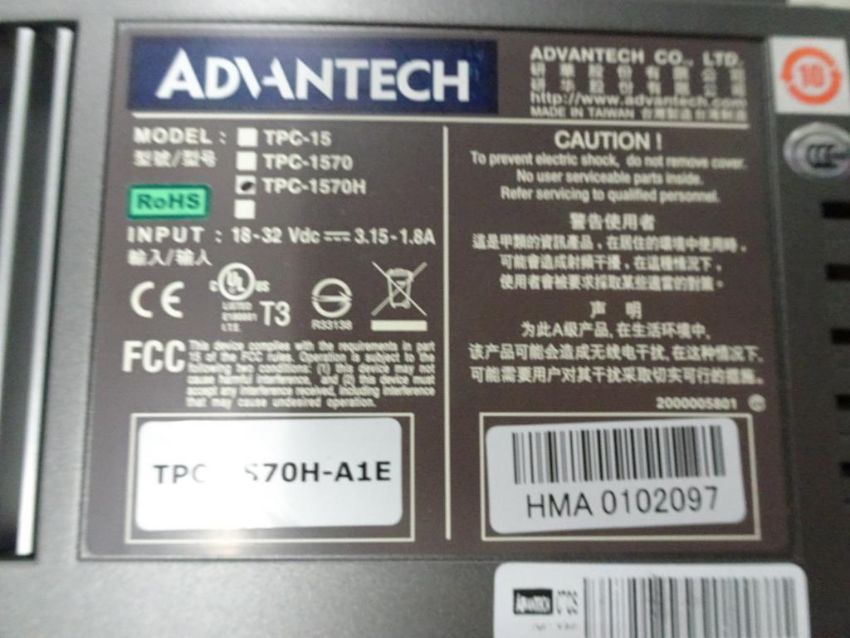 Advantech TPC-1570H Touch Screen Display Module. HIT# 2398841. Machine Shop - 2nd Floor. Asset Located at 700 Eubanks Drive, Vacaville, CA 95688.