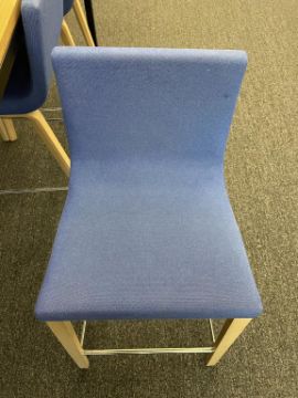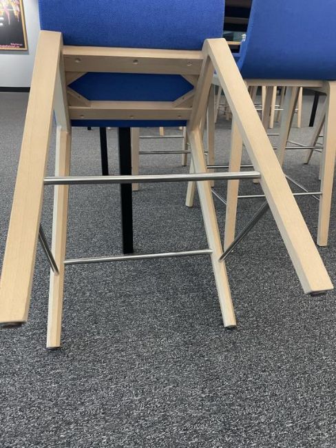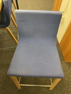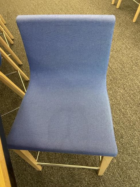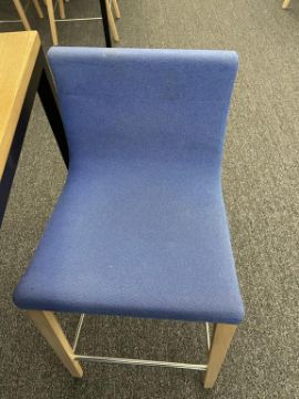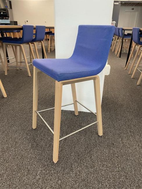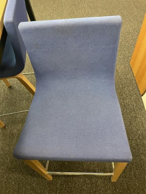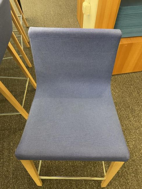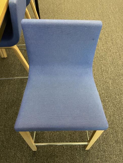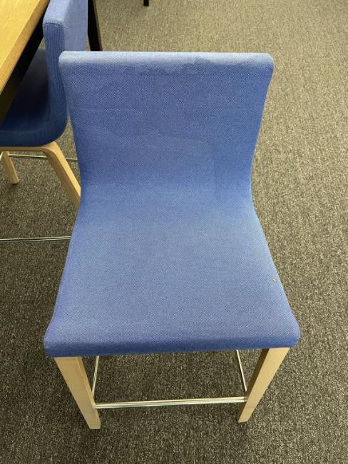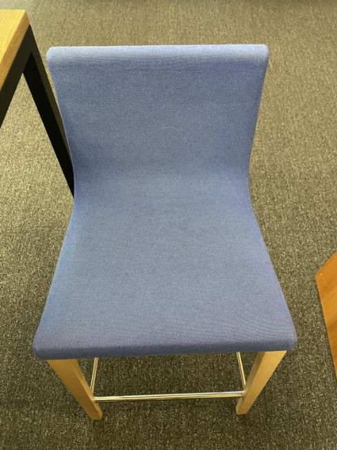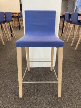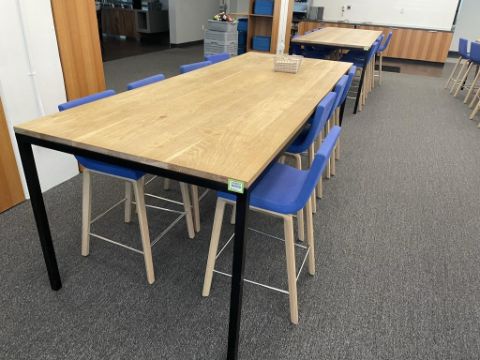 Lot Includes: (8) Andreu World Lineal Comfort Counter Stools, Solid Beech Wood Base, Blue Fabric Chair Dims = 19.25"W x 20.25"D x 36.5"H. And (1) OHIO Design Table Dims 110"L x 42"D x 36"H. HIT# 2366007. Loc: Bldg2-9 / Café. Asset Located In 1355 Market St. San Francisco, CA 94103.