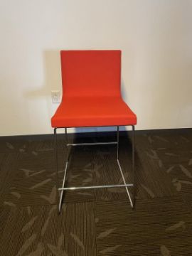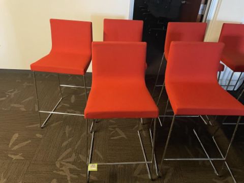 (5) Andreu World Lineal Comfort Counter Stools, Red Fabric. Dims = 19.5"W x 20.25"D x 36"H / 25.5" Seat H. HIT# 2366063. Loc: 6th Flr. Asset Located In 1355 Market St. San Francisco, CA 94103.