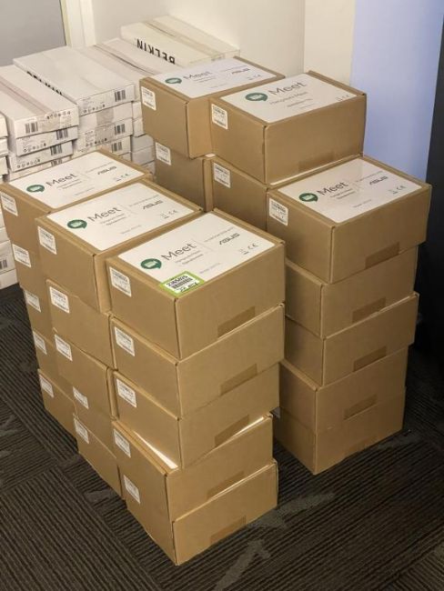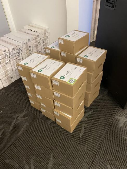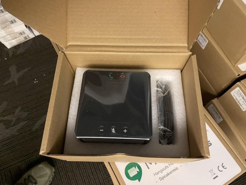 (32) Google Hangouts Meet G017A Conference Call Meeting SpeakerMic, Black, In Original Packaging. HIT# 2365825. Loc: 6th flr Office. Asset Located In 1355 Market St. San Francisco, CA 94103.