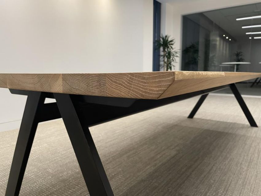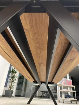 OHIO Design Table, Solid Wood Top, Hand Welded Steel A-Frame. Dims = 120"L x 42"W x 28.25"H. HIT# 2365865. Loc: Bldg2-2 / B2-236. Asset Located In 1355 Market St. San Francisco, CA 94103.